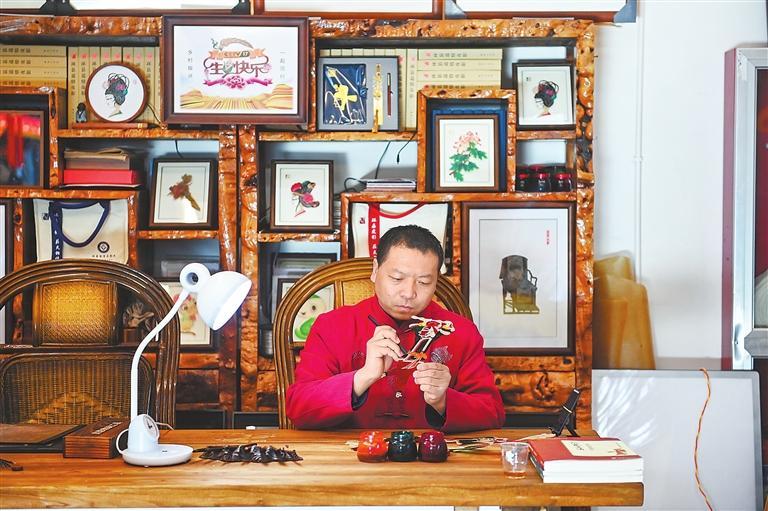 手工藝人張治文借鑒民間剪紙的傳統(tǒng)手法,以牛皮為料,按照制皮、過(guò)樣、雕刻、著色、出水、裝訂等工序精心制作一張張皮影。道情皮影既是演出的道具又是獨(dú)立的藝術(shù)品,魅力在于其獨(dú)特的表演形式和精湛的制作工藝。