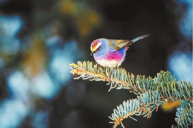 花彩雀鶯是一種毛茸茸偏紫色的雀鶯,它們是祁連山的歌唱家,它們清脆婉轉(zhuǎn)的啼鳴聲,宛如靈動跳躍的音符,打破了山間的寂靜,仿佛在向這世界的每一個角落大聲宣告著:春天來啦!它們在枝頭歡快地跳躍著,靈動的小眼睛不停地打量著周圍發(fā)生的細(xì)微變化,宛如一群天真無邪的小精靈,為這山林增添了無盡的靈動與趣味。