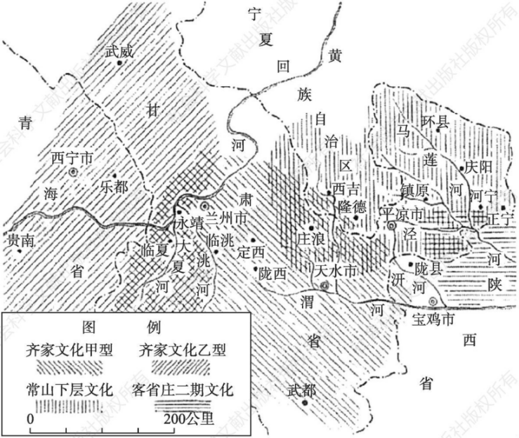 常山下層文化是黃河中上游新石器時代晚期的重要文化遺存,最早發(fā)現(xiàn)于甘肅省鎮(zhèn)原縣常山遺址而得名。胡謙盈先生認為其主要分布在西北黃土高原東部的涇、渭兩河流域上游區(qū)域,其分布范圍東至子午嶺西側,西至鳥鼠山東側的渭源縣,北至寧夏回族自治區(qū)南部,南至陜西省彬縣及甘肅天水地區(qū)南部。學界普遍認為,它是由仰韶文化晚期發(fā)展而來,同時也是齊家文化的重要源頭之一。依據(jù)碳14測定,其年代約為公元前2930±180年,相對年代晚于仰韶文化,早于先周文化,是西北新石器時代晚期的文化紐帶,在研究中國史前文化演進中占據(jù)重要地位。