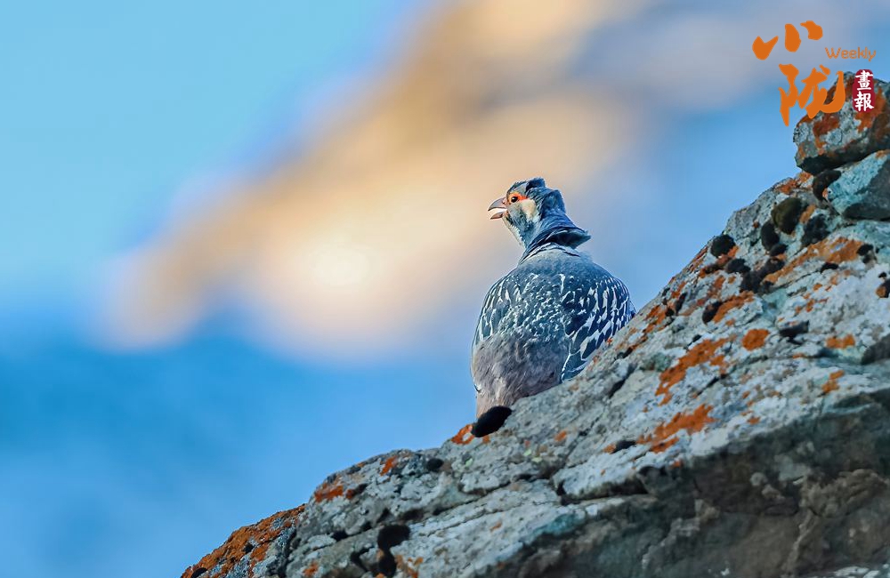 國家二級保護(hù)動物藏雪雞,又名“淡腹雪雞”或“貝母雞”。雌雄羽毛相似。嘴為黃色,腳為紅色。前額有一桔色臘膜,眼周裸皮為黃色。背部暗棕色,密布不規(guī)則的細(xì)斑。翼羽暗褐色,具有白色羽緣,初級飛羽為灰褐色,尾羽為深棕色,密布黑褐色點(diǎn)斑。胸、腹均有淡色與黑色相間的黑紋。