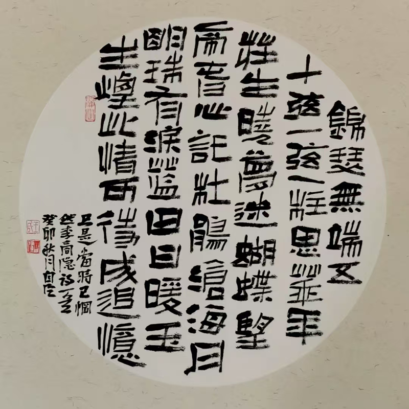 王自強(qiáng)的隸書植根于《西狹頌》的金石氣,又融入個(gè)人創(chuàng)新。他的作品《李白古風(fēng)其一》在2021年“中國書法·年展”中脫穎而出,以古樸厚重的筆法、靈動多變的章法,位列全國前51名,成為成縣首位躋身國家級書法大展的藝術(shù)家。2025年,他的隸書作品再次入選全國第五屆隸書作品展,在15214件投稿中脫穎而出,展現(xiàn)出對漢隸藝術(shù)的深刻理解與創(chuàng)新表達(dá)。