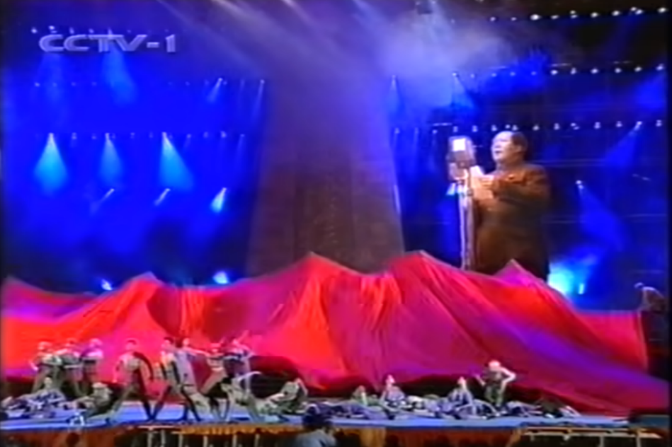 巨幅紅布褪去與毛主席剪影入場