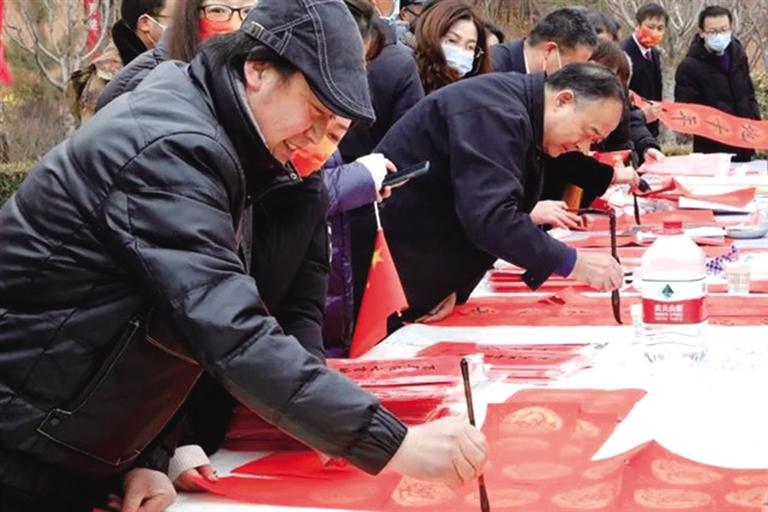 在此次活動(dòng)中,省文旅廳組織向靜寧縣捐贈(zèng)了藝術(shù)普及高質(zhì)量發(fā)展、智慧圖書(shū)館、三館一站免費(fèi)開(kāi)放、戲曲進(jìn)鄉(xiāng)村、“春綠隴原”文藝展演、文化人才服務(wù)支持等項(xiàng)目經(jīng)費(fèi)共計(jì)324萬(wàn)元?;顒?dòng)現(xiàn)場(chǎng),還向群眾贈(zèng)送了數(shù)字文化資源光盤(pán)及1000余份省內(nèi)旅游宣傳資料;組織市級(jí)非遺傳承人開(kāi)展手工技藝展示,向群眾贈(zèng)送窗花及“福”字等剪紙作品;組織書(shū)畫(huà)專業(yè)人員為群眾寫(xiě)春聯(lián)、送書(shū)畫(huà),受到群眾的熱烈歡迎,為即將到來(lái)的虎年春節(jié)增添了濃濃的喜慶氛圍。