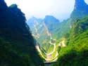 天門山,距市區(qū)僅8公里,海拔1518.6米,是張家界的文化圣地,被尊為“張家界之魂”,有湘西第一神山的美譽(yù)。山體孤峰高聳、氣勢(shì)臨空獨(dú)尊,世界最高海拔的天然穿山溶洞——天門洞,懸于千尋素壁之上,成為奇絕天下的勝景,也成就了當(dāng)?shù)厣詈、大氣的“天文化”和“仙山文化”。占地萬余平方米的天門山寺,自明朝以來香火鼎盛,是湘西的佛教中心!疤扉T洞開、鬼谷顯影、獨(dú)角瑞獸”等六個(gè)千百年來的難解之謎,渲染著撲朔迷離、神秘出塵的氣氛。 天門山還是張家界的第二個(gè)國家森林公園,擁有世界罕見的高山珙桐群落,山中四季野趣盎然,春有竹櫸斗翠,夏擁飛瀑疊云,秋至層林盡染,冬來迭嶂團(tuán)雪,變幻多姿,深遠(yuǎn)有致,宛如一座美不勝收的神仙花園。天門山是集神奇獨(dú)特的地質(zhì)外貌、歷史悠久的宗教文化、異彩紛呈的人文勝跡、豐富寶貴的自然資源于一體的旅游度假勝地。飛跨7.2公里的客運(yùn)索道,以世界第一的長度,令游客從城市花園直達(dá)原始空中花園,擺脫都市喧囂浮躁,感受天人合一的明澈寫意,從而擁有終身難忘的旅游體驗(yàn)。