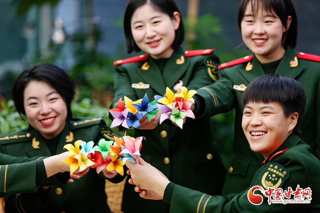 蘭州支隊(duì)十七中隊(duì)女兵通過折千紙鶴和百合花喜迎節(jié)日的到來。