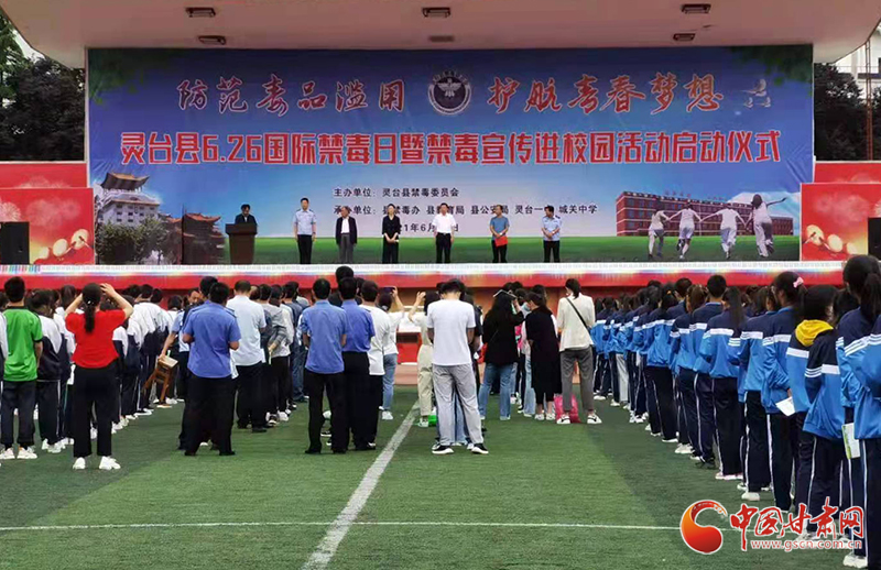 中國甘肅網(wǎng)6月25日訊(本網(wǎng)記者 李紅軍 通訊員 李青)為深入推進(jìn)毒品預(yù)防宣傳教育,全面普及禁毒知識,不斷增強(qiáng)人民群眾特別是廣大青少年學(xué)生的禁毒防毒意識,營造全民禁毒濃厚氛圍,6月25日,平?jīng)鍪徐`臺縣禁毒委在靈臺一中操場舉辦了全民禁毒宣傳月暨禁毒宣傳進(jìn)校園啟動儀式。