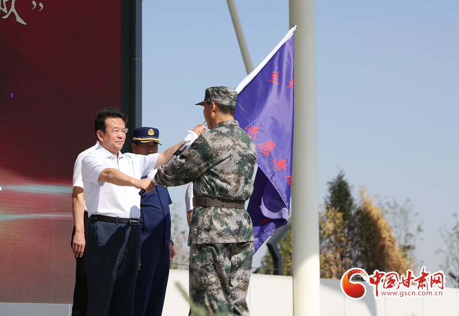 市委常委、政法委書記魏晉文同志為蘭州高新區(qū)“退役軍人志愿者服務隊”授旗