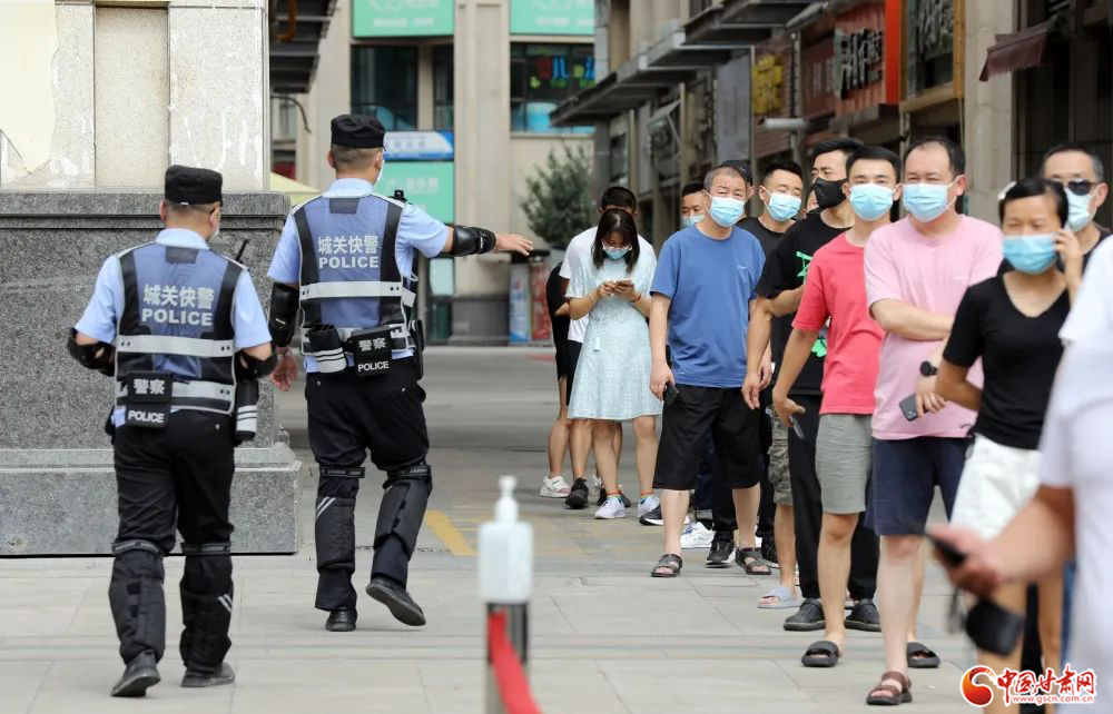 城關(guān)公安快警發(fā)揮機(jī)動優(yōu)勢,在轄區(qū)各核酸采集點(diǎn)開展秩序維護(hù)安全守護(hù)等工作。楊 釗/攝