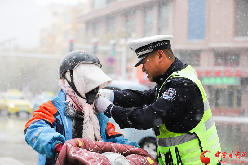 隴拍客丨民樂:雪紛飛 “警”相隨 交警守護(hù)平安出行路
