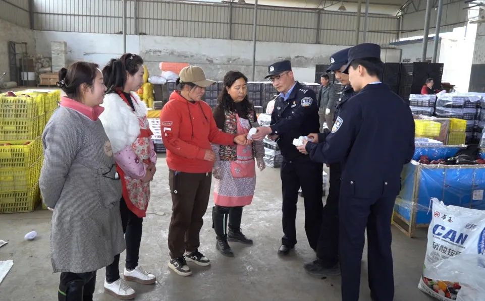 除了巡邏防控和矛盾調(diào)解,花牛派出所還開設(shè)了“田間課堂”,向果農(nóng)積極開展普法宣傳。在農(nóng)資市場(chǎng)休息區(qū),民警們拉起橫幅,向果農(nóng)們講解防盜、防騙、防火等安全知識(shí)。民警馬嘯不時(shí)翻看手機(jī)里的微信群說(shuō):“我們主動(dòng)將果農(nóng)納入微信群,不定時(shí)推送防騙知識(shí),果農(nóng)們遇到拿不準(zhǔn)的情況也會(huì)及時(shí)向我們咨詢。”