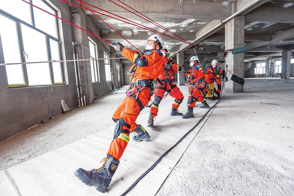 演練現(xiàn)場(chǎng)設(shè)置在民樂縣一處廢棄廠區(qū),精心搭建的模擬廢墟區(qū)真實(shí)還原了地震后的慘烈場(chǎng)景:斷裂的預(yù)制板下壓著被困者,傾倒的鋼架阻斷逃生路徑,熊熊燃燒的化工廠冒出濃煙……12個(gè)高難度救援科目輪番上演,每一處細(xì)節(jié)都直擊地震救援的核心挑戰(zhàn)。