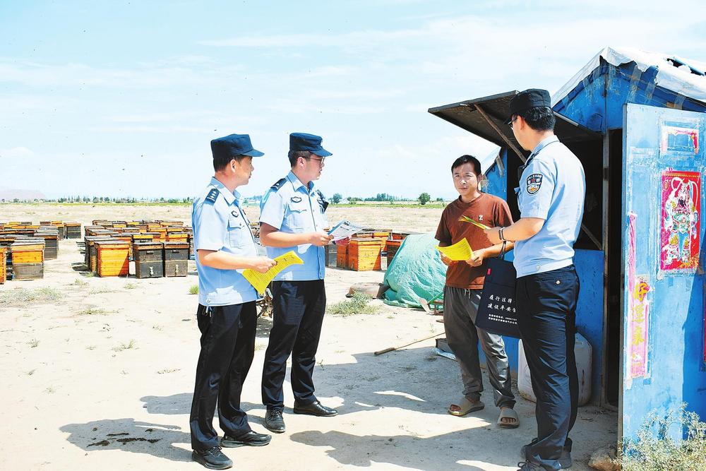 民警走進蜂場宣傳安全知識。新甘肅·甘肅法治報通訊員王承棟攝