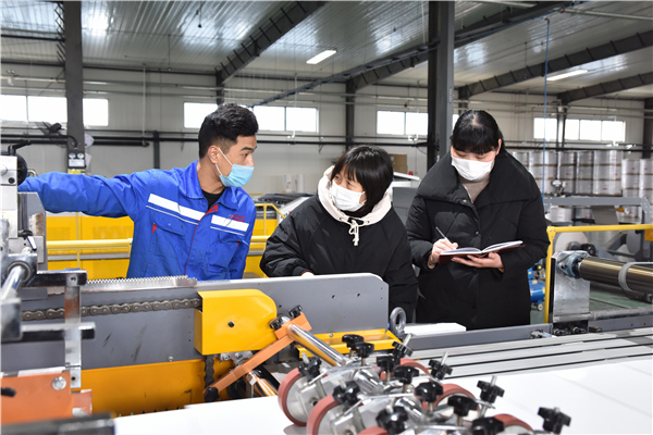 為切實幫助復(fù)工復(fù)產(chǎn)企業(yè)解決實際困難,安徽省滁州市南譙區(qū)紀委監(jiān)委女干部們組成“巾幗服務(wù)隊”,深入企業(yè)生產(chǎn)加工車間,開展調(diào)研走訪,跟進督促政策落實。(安徽省滁州市南譙區(qū)紀委監(jiān)委 孫煒 攝)