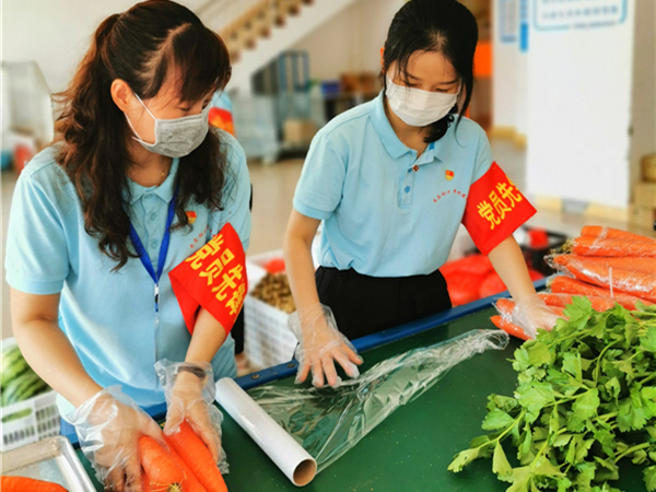 海南省保亭縣紀委監(jiān)委第一黨支部組織黨員先鋒隊下沉一線,保障疫情期間群眾的蔬菜供應(yīng)。(海南省保亭縣紀委監(jiān)委 王秋婷 攝)