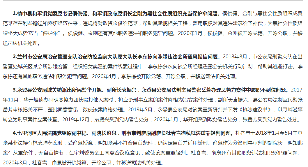蘭州市紀委監(jiān)委通報4起掃黑除惡專項斗爭“懲腐打傘”典型問題