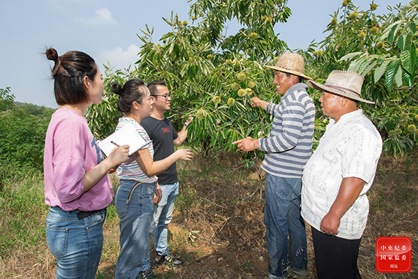 安徽省各級紀(jì)檢監(jiān)察機(jī)關(guān)緊緊圍繞決戰(zhàn)脫貧攻堅做深做實監(jiān)督工作,加大群眾身邊腐敗和作風(fēng)問題治理力度。圖為淮南市八公山區(qū)紀(jì)檢監(jiān)察干部深入板栗園區(qū),向種植戶了解惠民政策落實情況。倪慧 攝