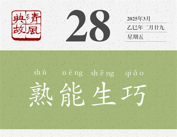 陳堯咨的射術(shù)不是不高,但用“無他,但手熟爾”來評(píng)價(jià),給人的感覺是輕飄飄的;賣油翁往葫蘆里倒油的技術(shù)也不是不高,但賣油翁自己也說是“我亦無他,惟手熟爾”。在這個(gè)故事后面,歐陽修還說了一句話:“此與莊生所謂解牛、斫輪者何異?”“解牛”即“庖丁解牛”,“斫輪”即“輪扁斫輪”,前者即典故“游刃有余”之源,后者即典故“得心應(yīng)手”之源。意思是,這些并不神秘,都是“惟手熟爾”。后人即以“熟能生巧”為典,形容實(shí)踐多了,自然就能找到竅門,產(chǎn)生出巧妙的辦法,干起事來就能隨心所欲。董必武的詩《次稚天韻》:“會(huì)者不難終要學(xué),熟能生巧豈徒詩。”