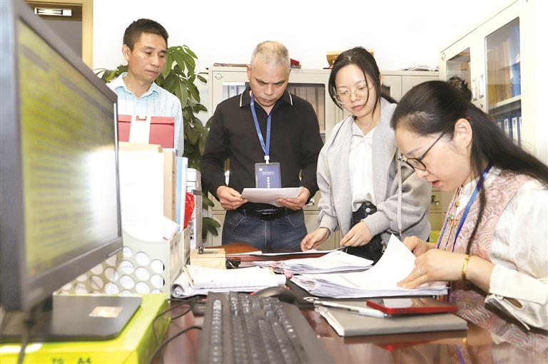 “五一”將至,浙江省金華市婺城區(qū)紀(jì)委監(jiān)委堅(jiān)守節(jié)點(diǎn),對(duì)重點(diǎn)場(chǎng)所、重要領(lǐng)域和關(guān)鍵環(huán)節(jié)開(kāi)展監(jiān)督檢查,打好糾治“四風(fēng)”組合拳。圖為該區(qū)紀(jì)委監(jiān)委聯(lián)合審計(jì)、財(cái)政等部門(mén)對(duì)某單位“三公”經(jīng)費(fèi)使用和津補(bǔ)貼發(fā)放情況進(jìn)行抽查。樓婷 攝
