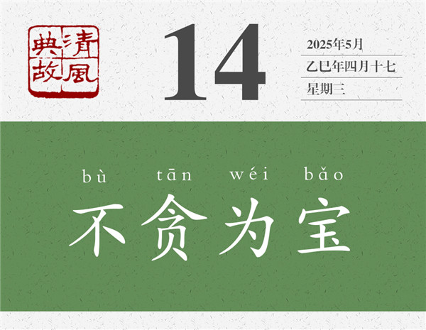 《幼學(xué)瓊林·珍寶》:“從吾所好,豈曰富而可求;有命存焉,當(dāng)以不貪為寶。”“寶”有物質(zhì)層面的,也有精神層面的。有些人為了追求物質(zhì)財(cái)富,而置道德操守甚至嚴(yán)刑峻法于不顧;不要說別人主動之“獻(xiàn)”,甚至還會采取各種手段去“索”。有些人為了自己的尊嚴(yán)和操守,則會視來意不明、來路不清之財(cái)寶為“糞土”,他們寧愿一生清貧,也不會在金銀財(cái)寶面前心理失衡,不會在誘惑面前人格失守。