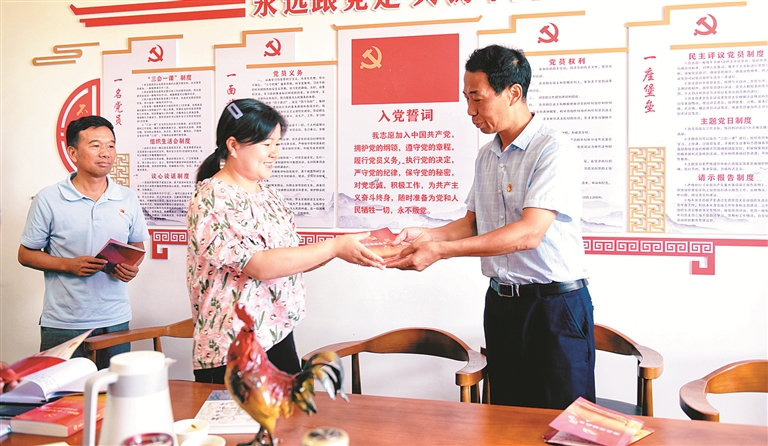 近日,安徽省宣城市宣州區(qū)紀(jì)委監(jiān)委第一黨支部來(lái)到“1+1”黨建共建村級(jí)黨支部,為村級(jí)紀(jì)檢委員送上“政治生日”賀卡。姚駿 攝