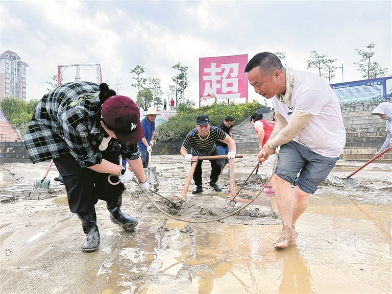 廣西壯族自治區(qū)柳州市融安縣紀(jì)委監(jiān)委聞“汛”而動(dòng),緊盯防汛統(tǒng)籌協(xié)調(diào)等關(guān)鍵環(huán)節(jié)開展全程監(jiān)督檢查。圖為日前,該縣紀(jì)檢監(jiān)察干部在河?xùn)|龍舟廣場(chǎng)開展災(zāi)后清淤工作。覃燕 攝