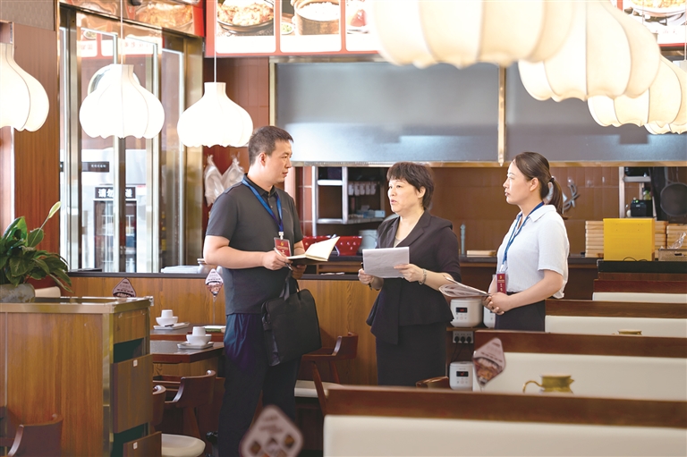 河南省漯河市郾城區(qū)紀(jì)委監(jiān)委圍繞公款吃喝、違規(guī)接受管理服務(wù)對象宴請等違反中央八項(xiàng)規(guī)定精神問題開展監(jiān)督檢查,一嚴(yán)到底狠剎歪風(fēng)邪氣。圖為近日,該區(qū)紀(jì)檢監(jiān)察干部在轄區(qū)某飯店了解相關(guān)情況。王曉 攝