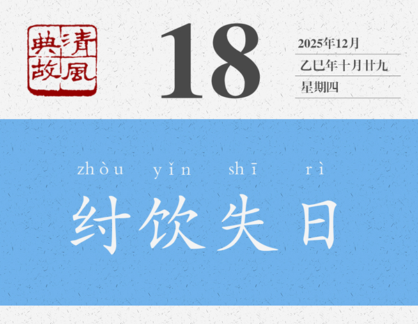 一提起商紂王,大概就會(huì)想起沉湎酒色、窮兵黷武、重刑厚斂等等,與之相關(guān)的典故也有酒池肉林、炮烙之刑、牝雞司晨等等。“歡以失日”是他沉湎酒色的又一個(gè)故事,往輕處說(shuō)就是酒醉失憶了,往重處說(shuō)就是把一切都拋到九霄云外了。箕子,即子胥余,商紂王的叔父,官至太師,封于箕,故稱箕子,“殷末三仁”之一,《論語(yǔ)·微子》曰:“微子去之,箕子為之奴,比干諫而死,殷有三仁焉。”箕子曾多次勸諫紂王,但紂王不聽,他心灰意冷,索性披發(fā)佯狂,紂王見此,以為箕子真瘋了,遂將他囚禁起來(lái),貶為奴隸。有了這個(gè)背景,就知道箕子為什么要“辭以醉而不知”了。后世則以“紂飲失日”為典,形容生活荒唐混亂,也用來(lái)形容不辨時(shí)間。黃遵憲詩(shī)《倫敦大霧行》:“蒼天已死黃天立,倒海翻云百神集。一時(shí)天醉帝夢(mèng)酣,舉國(guó)沉迷同失日。”