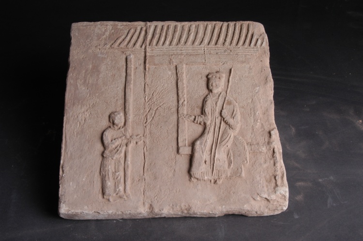 宋代??v30.2厘米,橫30.7厘米,厚3厘米。征集。磚呈長(zhǎng)方形,青灰色,通過模印工藝展示了屋檐下一婦人坐于窗臺(tái)前,給一端物的幼子訓(xùn)話的場(chǎng)景,是研究宋代社會(huì)生活、家庭倫理及畫像磚藝術(shù)的珍貴實(shí)物資料。