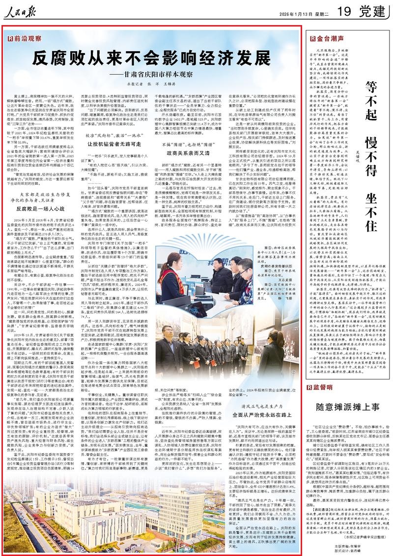 全面從嚴治黨永遠在路上。慶陽的實踐是警示,更是啟示:反腐敗從來不會影響經濟發(fā)展,反而有利于經濟發(fā)展持續(xù)健康。黃土塬上的清風,正吹拂出更廣闊的發(fā)展天地。(記者 張洋 王錦濤)