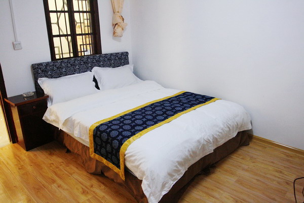 對了,驢友大廳還準備了臺電視,晚上大家可一起欣賞節(jié)目,今年的足球世界杯可一起為喜歡的球隊邊喝彩邊喝酒,還準備了幾張小木桌子及若干小木椅子,白天可以搬在屋外院子中邊曬太陽邊喝茶聊天或打牌,晚上可邊欣賞星星邊吃西瓜。 房間內(nèi)除了床上用品是準四星標準配置外,床尾單是按土家印花布定制的,有民俗特色,電視、獨立衛(wèi)生間、飲水機等齊全,1.2米的床,淡黃色溫馨墻紙配杉木地板,墻上配原木相框及土家印花或銀飾配件,還在床頭柜上留個小小的厚厚的本子,記錄一路下來住在這個房間自助游客的故事。 房間的命名,除了用數(shù)字命名外,也配以景點名字,如,101號房也叫跳魚潭,102號房也叫紫草潭,103號房叫雙龜探溪等等,相應房間內(nèi)掛上一副其景點的美圖,一樓上二樓那片大大的墻,為照片墻,游客的照片,我們的照片,旅館的照片,圍繞的整片墻,過道上及兩側(cè),掛上長長的大紅燈籠,掌柜的每天和來自各地不同的游客們交流,傳授他們張家界和鳳凰自助游的獨門秘籍,晚上一起吃吃喝喝,說說笑笑。
