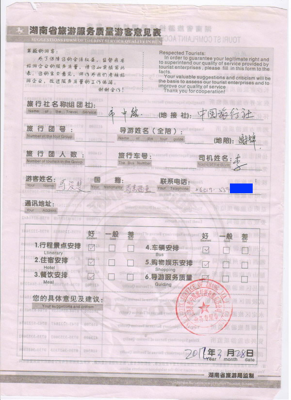 馬來西亞馬先生一行6人旅游質(zhì)量回饋