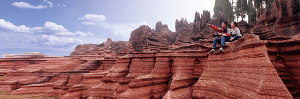 行走在這亙古不變的質(zhì)樸之間,無意卻聯(lián)通了古今,靈魂也自然滌盡所有浮華焦躁,沉靜下來。這或許是紅石林之比于其他去處最獨特的地方了。