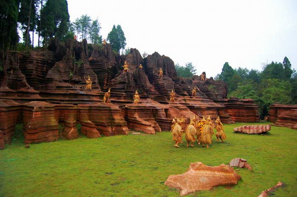 每一個看過《紅樓夢》的人或者都曾為寶黛之間那纏綿悱惻卻終究難以圓滿的愛情而黯然神傷,可是卻鮮有人知道遠離金陵繁華地的三苗蠻地,卻真實地演繹著守候數(shù)億年的木石之緣。湘西那一片密林帶著些執(zhí)著的癡傻,守護著這姿態(tài)萬方而神秘的紅石林,而這紅石亦以自己的篤定,回應這片林木,任由斗轉星移,?萆奖馈