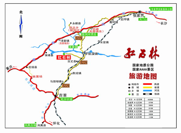 紅石林國家地質(zhì)公園位于湘西自治州宋祖英的家鄉(xiāng)——古丈縣境內(nèi)。紅石林國家地質(zhì)公園是張家界至鳳凰旅游黃金走廊上的一顆明珠,是中國唯一的紅色碳酸鹽石林,與“芙蓉鎮(zhèn)”隔酉水河相望,景區(qū)集巖溶、峽谷、溶洞、湖泉、瀑布于一體,具有極高的地質(zhì)科研、美學(xué)觀賞和旅游景觀價(jià)值,被譽(yù)為“武陵第一奇觀”。2005年被國土資源部授予國家地質(zhì)公園稱號,2006年被評為山水人文類的“新瀟湘八景”之一的“酉水畫廊”,2013年榮膺“中國最美地質(zhì)公園”評選第一名,2013年被評為國家4A級旅游景區(qū)。