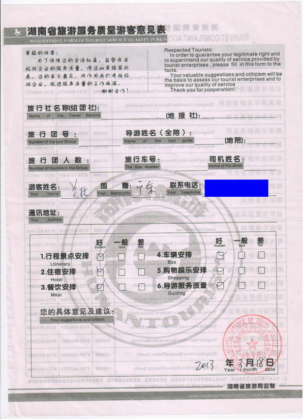 廣東關(guān)先生一行16人旅游質(zhì)量回饋單