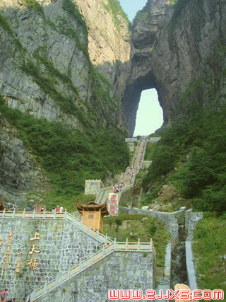 1999 年,世界特技飛行大師架機(jī)穿越天門洞,這一活動在全球引發(fā)轟動效應(yīng),收看現(xiàn)場直播的觀眾就達(dá)到 8 億之多,共計九百九十九級臺階的上天梯,是通達(dá)天門的途徑,也是許愿祈福的靈地。攀登上天梯,既是鍛煉意志,挑戰(zhàn)自我的過程,也是感悟人生歷程、脫俗超凡和豁朗心胸的過程。上天梯兩側(cè)五個休息平臺分別命名為“如意”、“青云”、“長生”、“琴瑟”、“有余”,寓意“福、祿、壽、禧、財”五福臨門的生活祈求和人生愿望,人們可在攀登的過程中祈福求愿,撒下對自己和親友的美好祝愿。歷經(jīng)艱辛,登上第九百九十九級臺階,跨過寓意“一步登天、心想事成”的“天門檻”,將有擺脫煩惱,心胸豁然開朗的心靈感悟。 |