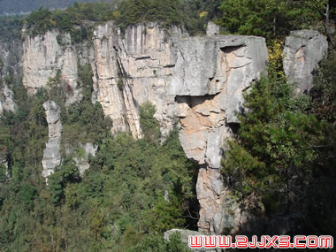 看罷絕景“仙女獻(xiàn)花”,前行數(shù)十步,回眺右側(cè)曠谷,但見數(shù)十奇峰林立。中有一峰似駿馬昂首振鬃長(zhǎng)嘶,側(cè)有一石似武士牽韁繩馴馬。相傳這是向王天子的坐騎與衛(wèi)兵。山谷四周有不少神態(tài)各異的“武士”正在看熱鬧哩。松濤陣陣似馬嘶人吼。
