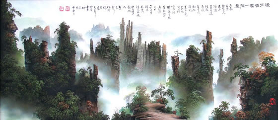 李軍聲創(chuàng)造的砂石畫,大膽突破傳統(tǒng)繪畫用材,利用自然植物的色相創(chuàng)造性地衷用自然,極具藝術價值與收藏。他說過:“一件精美的藝術品不受材料和技巧的束縛,而取決于創(chuàng)作者的心靈感悟”。軍聲畫院和軍聲砂石畫就是這樣一處閃爍在張家界自美景中的,獨具藝術魅力的人文景觀。