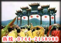 這是土家族古老的祭祀舞蹈。相傳八寶為古代土家先祖八個(gè)部落的首領(lǐng),人稱“八部大王”、“八部大神”,后來,八位首領(lǐng)先后戰(zhàn)死。后人為紀(jì)念他們,便精心制作了八個(gè)銅鈴,并按八部王在位時(shí)穿的八幅羅裙,騎著象征祖先騎過的寶馬,手搖銅鈴,翩翩起舞,高唱祭祖求福的古歌,以示懷念。因?yàn)榘藗(gè)銅鈴代表八個(gè)首領(lǐng),就把這種舞蹈取名為“八寶銅鈴舞”。 |