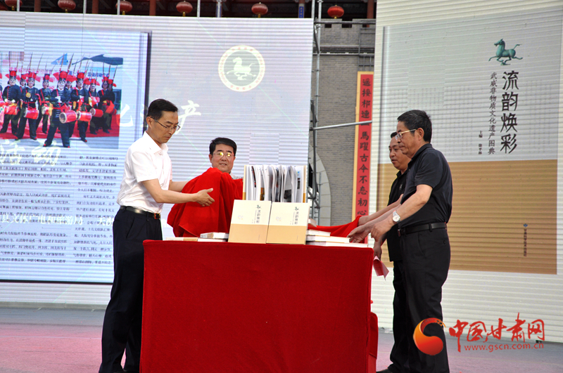 活動中,《流韻煥彩——武威非物質(zhì)文化遺產(chǎn)圖典》揭幕并首發(fā)?!读黜崯ú?mdash;—武威非物質(zhì)文化遺產(chǎn)圖典》是由武威市文體廣電和旅游局組織編寫,讀者出版集團(tuán)旗下的甘肅科學(xué)技術(shù)出版社出版,先后歷時5載。該圖典將散落在武威廣袤大地上的璀璨珍珠串連起來,將牽動著記憶深處的濃濃情思匯聚起來,展示了一個歷史武威、一個文化武威、一個多彩武威,是解讀武威的最好途徑。該圖典共收錄了84個非遺項目,81位項目代表性傳承人,用2000多張圖片和文字介紹,全方位、多角度展示了武威市非遺項目的獨(dú)特性、活態(tài)性、傳承性、流變性、綜合性、民族性、地域性等基本特點(diǎn)。該圖典最大的亮點(diǎn),就是在國家級、省級項目中融入互聯(lián)網(wǎng)思維,加入二維碼視頻鏈接,對項目進(jìn)行動態(tài)視頻展示,讓《圖典》不僅可看、可讀,而且能說會動,能唱會跳,實(shí)現(xiàn)了非遺項目活態(tài)傳承的創(chuàng)新。