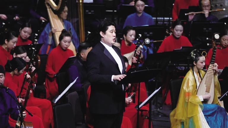 中國(guó)甘肅網(wǎng)1月4日訊 據(jù)蘭州日?qǐng)?bào)報(bào)道記者 李 超 攝)2021年12月31日、2022年1月1日,上海民族樂(lè)團(tuán)委約國(guó)際音樂(lè)大師譚盾創(chuàng)作演出國(guó)樂(lè)版《敦煌·慈悲頌》音樂(lè)會(huì)在上海大劇院大劇場(chǎng)世界首演,眾多歌唱家聯(lián)袂上海民族樂(lè)團(tuán)、蘭州音樂(lè)廳合唱團(tuán),以一部“一條聽得見(jiàn)的絲綢之路”的藝術(shù)盛宴奏響新年上海的跨年之夜,并為到來(lái)的2022年送去最美好的展望。