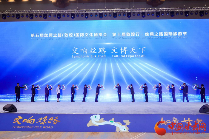 第五屆絲綢之路(敦煌)國際文化博覽會(huì)和第十屆敦煌行·絲綢之路國際旅游節(jié)于2021年9月24日—26日在甘肅省敦煌市隆重舉行。中共中央政治局委員、中央書記處書記、中宣部部長黃坤明以視頻形式出席開幕式暨高峰會(huì)議并發(fā)表主旨演講,300多名國外、國際組織及國內(nèi)省區(qū)市代表現(xiàn)場參加會(huì)議,400多萬網(wǎng)友線上參加有關(guān)活動(dòng)。大會(huì)以習(xí)近平新時(shí)代中國特色社會(huì)主義思想為指導(dǎo),認(rèn)真落實(shí)“一帶一路”倡議,以線上線下相結(jié)合的方式舉辦一系列主體活動(dòng),有力促進(jìn)絲路沿線各國文化交流與旅游合作,有效增進(jìn)文化認(rèn)同與情感共鳴,是一次展示中國文化自信、共商“一帶一路”建設(shè)、推動(dòng)文旅融合發(fā)展的盛會(huì),是一次提升甘肅對外影響力、展示開放新形象、凝聚發(fā)展新動(dòng)力的盛會(huì),得到了國際社會(huì)的廣泛贊譽(yù)和一致好評。