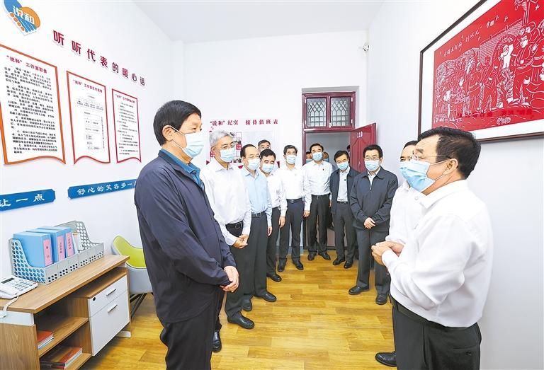 8月26日至28日,中共中央政治局常委、全國人大常委會(huì)委員長栗戰(zhàn)書在甘肅就黃河保護(hù)法立法進(jìn)行調(diào)研。這是8月26日,栗戰(zhàn)書在慶陽市西峰區(qū)后官寨鎮(zhèn)人大代表之家調(diào)研。新華社記者 龐興雷