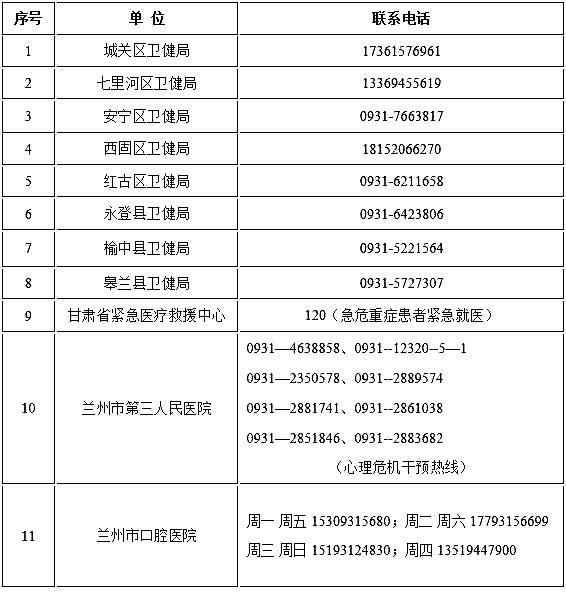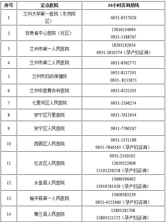 •蘭州市域“非綠碼”定點(diǎn)醫(yī)院24小時咨詢熱線•
