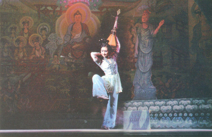 1980年,高金榮編纂了《敦煌舞教學大綱》,并于當年招收了第一屆敦煌舞班學生。教學實踐中,她開創(chuàng)了包括呼吸、手姿、手臂、單腳形態(tài)和琵琶道具組合在內的舞姿訓練課,編導了《敦煌夢幻》《極樂敦煌》等組舞以及教學劇目《千手觀音》《妙音反彈》《大飛天》《歡騰伎樂》《莫高女神》等,再一次“活化”了敦煌壁畫,形成了完備的敦煌舞教學體系。