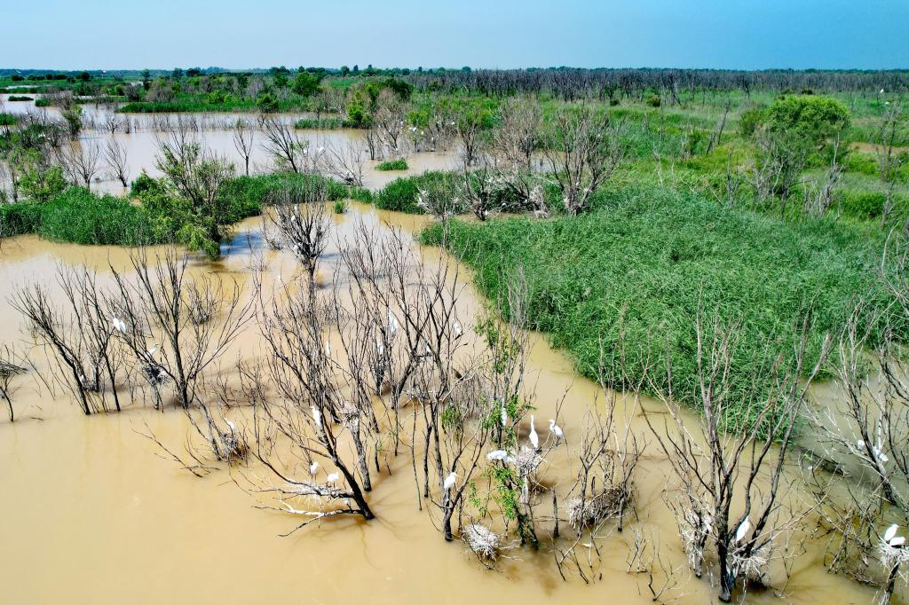 新華社北京7月9日電  題:黃河三角洲的綠色變遷——黃河調水調沙期間生態(tài)補水見聞