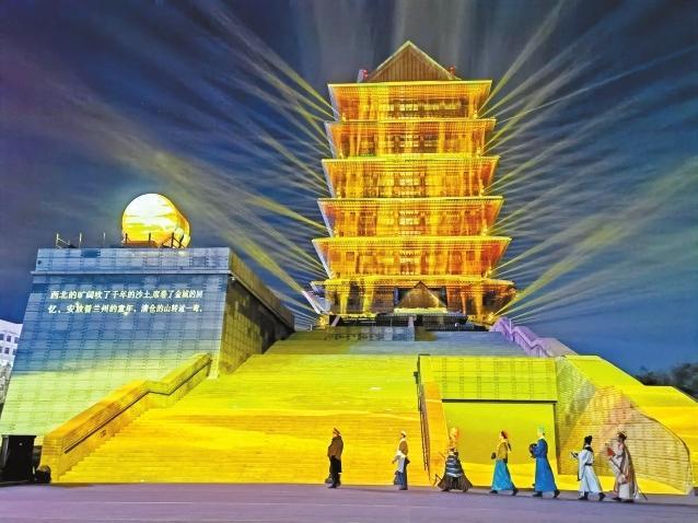 在黃河樓景區(qū),平時只有周末觀演的“黃河頌·大有蘭州”多媒體實景演出開啟了為期一個月的常態(tài)化巡演,每晚9時,璀璨的光影映襯著巍峨雄壯的黃河樓,在3D Mapping多媒體技術(shù)的加持下,帶給游客難忘的光影夜游體驗。而近日黃河樓入園游客較平時也增長了3倍之多,登樓參觀人數(shù)日均達(dá)到3000人次。