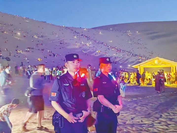 為了打造“安全游”環(huán)境,讓游客“放心游”,敦煌市公安局在各景區(qū)的關(guān)鍵點(diǎn)位,安排30余名增援警力加密巡邏頻次,擴(kuò)大巡邏范圍,全力維護(hù)景區(qū)秩序,織密治安“防控網(wǎng)”,筑牢平安“防火墻”,有效提高見警率、管事率,提升警務(wù)服務(wù)保障水平。