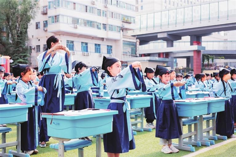 七里河小學已成功舉辦了14屆開筆禮,旨在通過弘揚傳統(tǒng)文化,增強學生的學習興趣,幫助孩子從小樹立正確的人生觀、價值觀、世界觀。