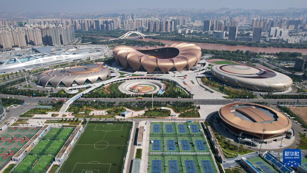 這是位于黃河蘭州段岸邊的蘭州奧體中心(9月26日攝,無人機(jī)照片)。新華社記者陳斌攝